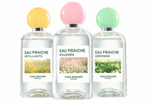 Le fragranze si presentano in un nuovo flacone trasparente, con un tappo sferico colorato — segno distintivo di ogni profumo: rosa per Eau Fraîche Poudrée, giallo per Eau Fraîche Pétillante e verde per Eau Fraîche Aérienne. La collezione Eaux Fraîches di Yves Rocher invita alla freschezza e alla leggerezza. Un gesto semplice, da compiere ogni giorno.