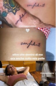 Giulia Stabile in queste ultime ore ha sorpreso i suoi fan, mostrando attraverso le sue stories Instagram, le prime immagini del suo primo tatuaggio. La ballerina si è tatuata la parola: “Confident”, ed inoltre la Stabile ha scritto: “Oltre che dentro di me, ora anche sulla mia pelle”. La ballerina si è tatuato lo stesso tatuaggio del collega Simone Nolasco, diventato successivamente uno dei suoi migliori amici, in questa estate infatti i due colleghi hanno trascorso molto tempo insieme, e soprattutto si sono esibiti su diversi palchi, come l’importante evento dedicato a Carla Fracci. “Non dimenticate mai di amarvi”. ha commentato il ballerino Simone. Il meraviglioso tatuaggio racchiude la loro speciale amicizia.