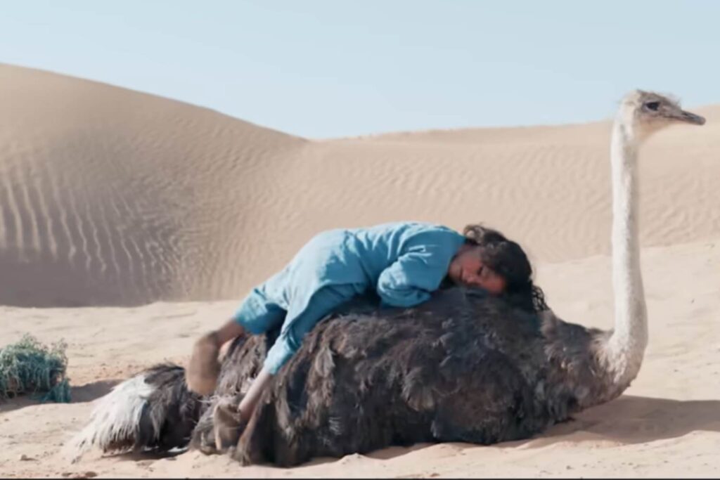 Hadara, figlio di una famiglia nomade, si perde nel deserto durante una violenta tempesta di sabbia quando ha appena due anni. Quello che dovrebbe essere l’inizio di una tragedia si trasforma invece in qualcosa di incredibile, per la nostra immaginazione e concezione, viene accolto da un gruppo di struzzi che lo proteggono e lo aiutano a sopravvivere per anni.