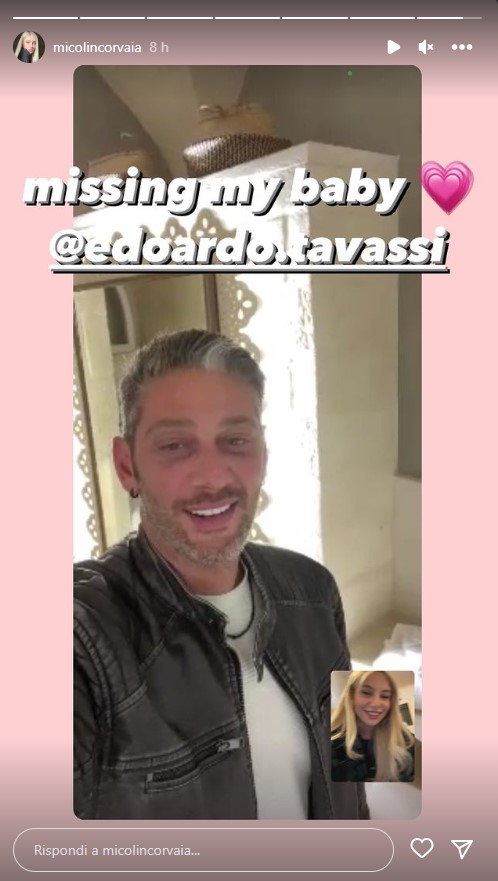 É di poche ore fa una dedica che la ex vippona ha riservato al suo fidanzato. I due appaiono in uno screenshot in videochiamata e Micol, taggando il suo compagno, gli ha dedicato parole cariche di romanticismo in inglese. La ragazza siciliana ha scritto: “Missing my baby”, che tradotto suona come “mi manchi”.