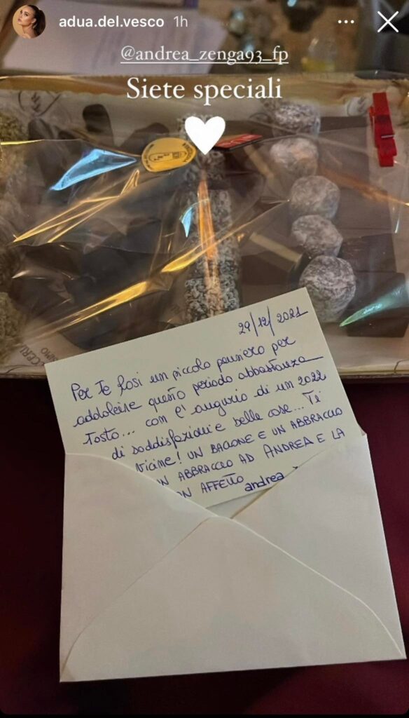 La loro storia d’amore va a gonfie vele. Questi ultimi giorni sono stati del tutto delicati per Rosalinda che purtroppo lo scorso 25 dicembre via Instagram ha annunciato la perdita di sua nonna mentre si trovava a Osimo, dai familiari di Zenga per trascorrere le prime festività natalizie insieme. Per Capodanno la coppia doveva raggiungere Messina, per concludere l’anno con la famiglia Cannavò, ma Rosalinda ha dovuto rinunciare alle festività con i suoi cari, a causa di una persona positiva entrata in contatto con sua sorella Francesca. Andrea ed i fan stanno cercando quotidianamente di supportare Rosalinda standole accanto con affetto. In queste ultime ore è arrivata una dolcissima sorpresa a casa di Andrea per entrambi. I fan gli hanno regalato un vassoio di cioccolato con una tenera lettera: “Per te Rosi un piccolo pensiero per addolcire questo periodo abbastanza tosto… con l’augurio di un 2022 ricco di soddisfazioni e belle cose, ti siamo vicine!”. Rosalinda ha ringraziato tutti per l’affetto e per la dolce sorpresa inaspettata commentando: “Siete speciali”. Entrambi infatti sono circondati da fan speciali col quale condividono ogni emozione.