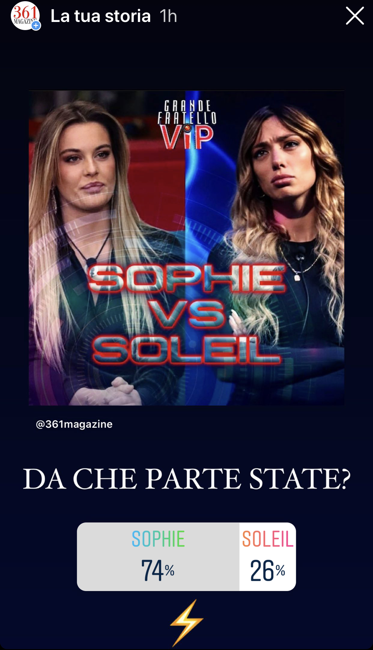 Uno scontro all’ultimo voto quello tra Soleil Sorge e Sophie Codegoni, Le due concorrenti lottano per la salvezza insieme a Miriana Trevsan, Jessica Selassiè, Maria Monsè e Biagio D’Agnelli, ma la sfida pare essere proprio tra le due ex protagoniste di Uomini e Donne.