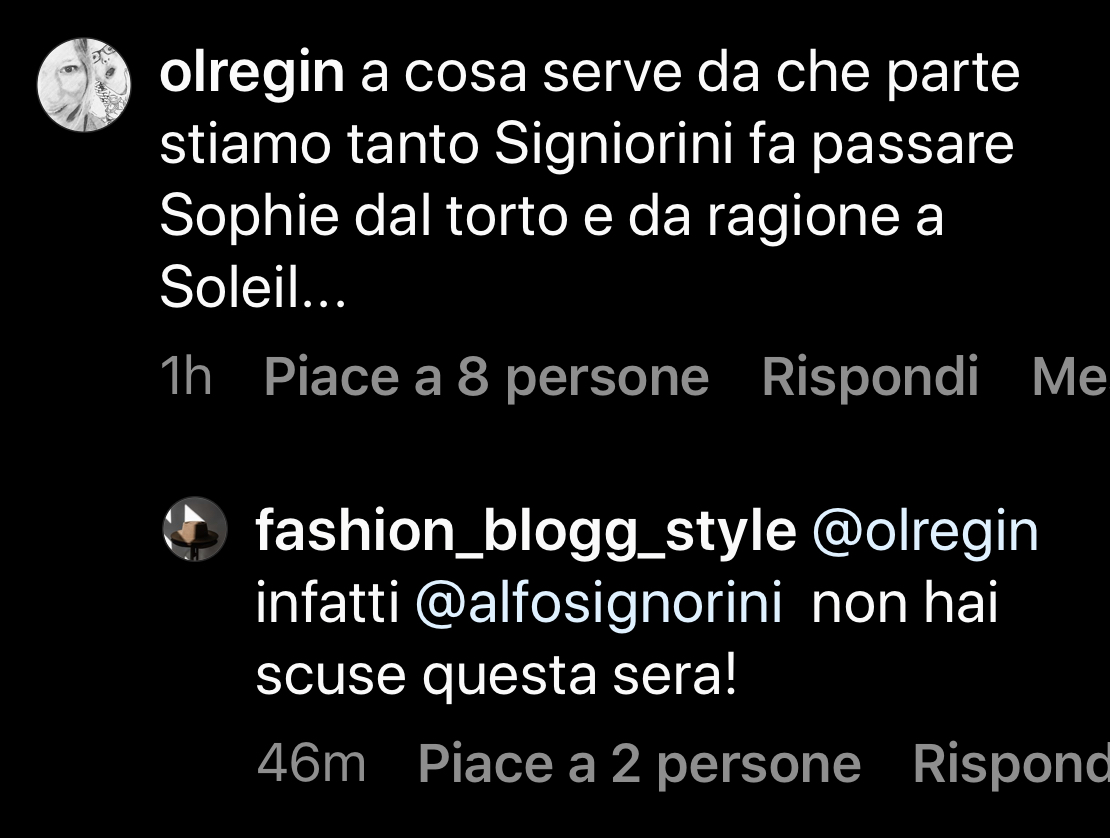 Sarà davvero così, oppure ci sarà un inaspettato cambio di rotta da parte di Alfonso Signorini? Se così fosse, potrebbero anche arrivare le tanto attese scuse di Soleil a Sophie e, tra le due, potrebbe tornare una pacifica convivenza.
