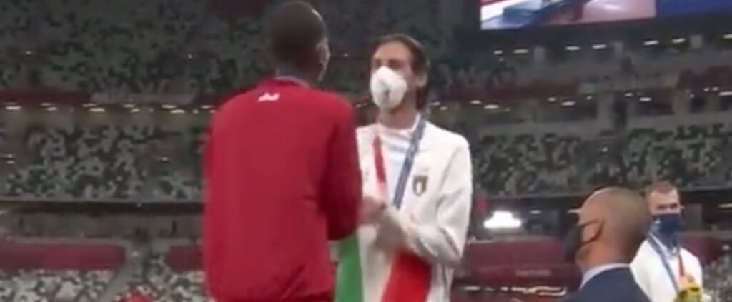 La premiazione della gara dell’azzurro si è svolta infatti solo oggi con Tamberi e l’atleta del Qatar saliti sul gradino più alto del podio scambiandosi la medaglia d’oro.